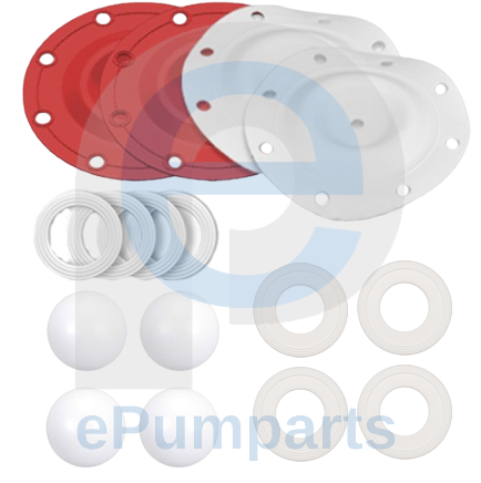 Contiene: 2 diafragmas de Santopreno FDA, 8 O'rings de Teflon encapsulados, 4 bolas Santopreno FDA